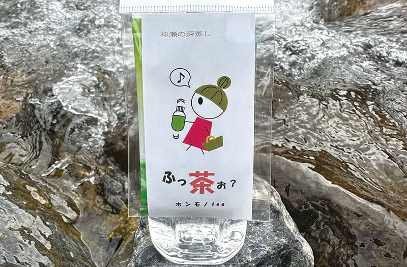 伊勢茶の代表的な栽培地の一つとして知られる大台町神瀬地域は、全国の品評会でもたびたび入選を果たしています。しかし2000年代より茶葉の売上低下が課題となり、若者への訴求策として、「大台町茶業組合」と「森と水を守る会」がコラボレーションして誕生したのが「ふっ茶お」です。深蒸し伊勢茶の粉を細長いティーバッグに詰め、大台町を流れる清流宮川の天然水のペットボトルとセット販売。HJ DESING はパッケージデザインを担当しました。